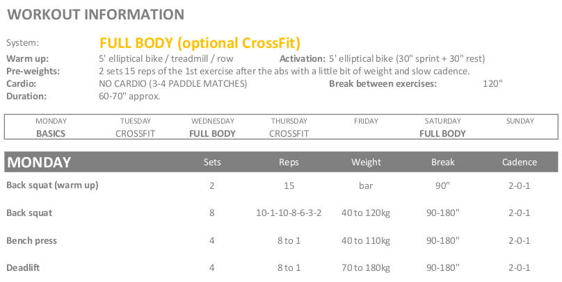 We will go back to a 3 day full body routine with CrossFit as optional.
