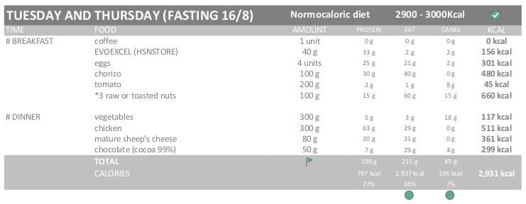 Finally, here is the diet I am going to follow this week, with the adjustments I have mentioned in the review: