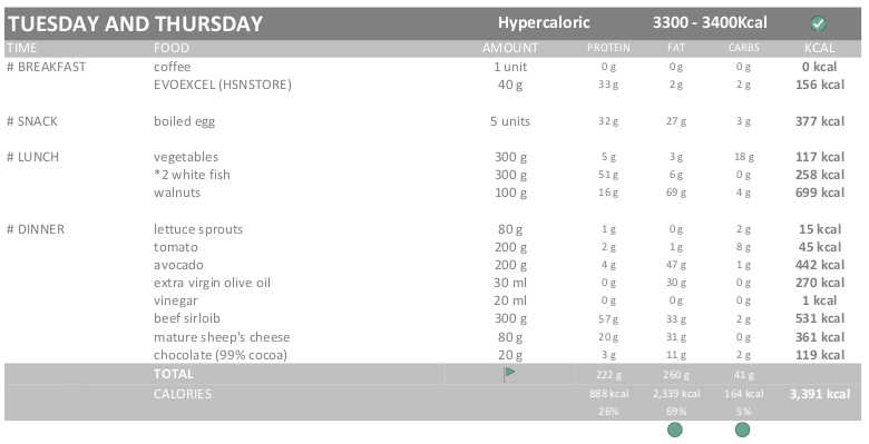 This week, I have already passed the 81Kg (I have gained 700g). At the end of this mesocycle, I will consider doing a 3 day fasting as a pathological treatment and minicut. This week, I will not readjust and I will keep going with the Hypercaloric diet (115% / 3.300-3.400 kcal. Moreover, there will be some days (negative balance) of normocaloric diet (100%, 2.900-3.000kcal).