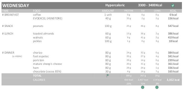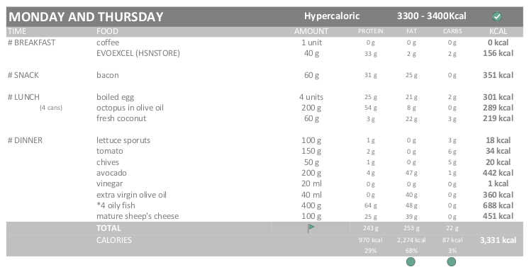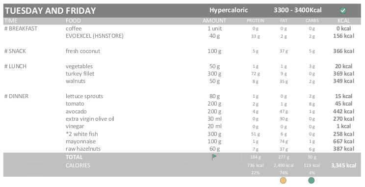 Evidently, I am not going to eat like an animal, so I will do a Hypercaloric diet (115% / 3.300-3.400 kcal, strict) without intermittent fasting for now.