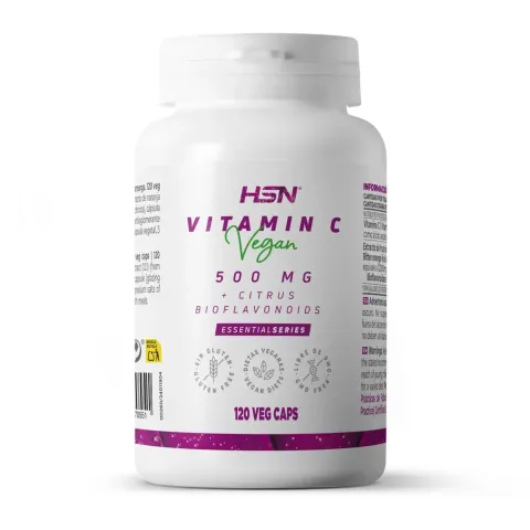 Vitamin C 500mg by EssentialSeries is a dietary supplement in vegetable capsules made from L-ascorbic acid as a form of vitamin C, and 12:1 extract of Citrus aurantiumL. standardised to 60% bioflavonoids.