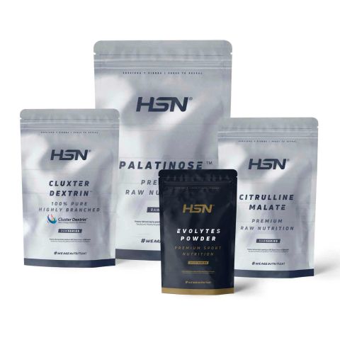 - Pack of 4 powdered supplements in RawSeries/SportSeries format: Isomaltulose (Palatinose™) 1 kg, Cluster Dextrin 1 kg, Citrulline Malate 150 g, and Evolytes 150 g with a full spectrum of electrolytes (sodium, chloride, calcium, potassium, and magnesium).