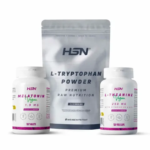 - Night pack with 3 supplements: Melatonin 1.9 mg (120 tabs), L-Tryptophan powder 150 g, and L-Theanine 250 mg (120 veggie capsules).