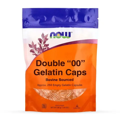 '00' Empty Gelatin Capsules from Now Foods are a dietary supplement made of empty capsules with bovine gelatin and water.