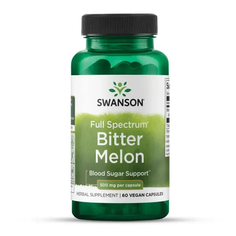 Full Spectrum® Bitter Melon 500mg from Swanson is a dietary supplement in veggie capsules made from bitter melon fruit (Momordica charantia).