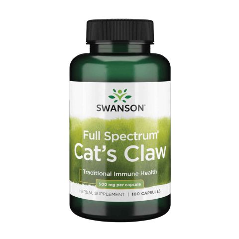 Full Spectrum® Cat's Claw 500mg by Swanson is a dietary supplement in capsules based on cat's claw bark (Uncaria tomentosa) with the Full Spectrum® formula.