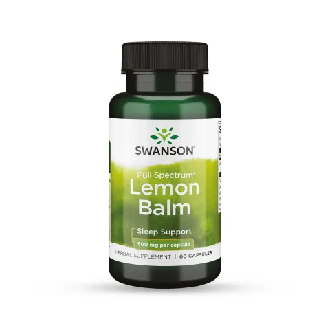 Full Spectrum® Lemon Balm 500mg from Swanson is a food supplement made from lemon balm leaves, featuring the registered Full Spectrum® formula and a high concentration.