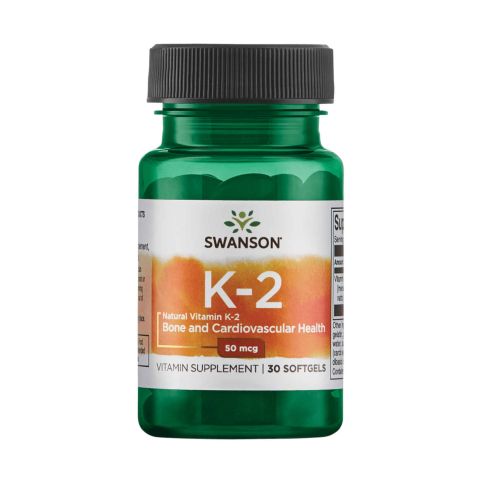 Natural Vitamin K2 50mcg from Swanson is a dietary supplement in softgels based on vitamin K2 in the form of menaquinone-7 derived from fermented soy natto.