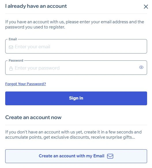 If you are a registered customer, you will just have to log in. If you are a new customer you will have to fill in the requested information.