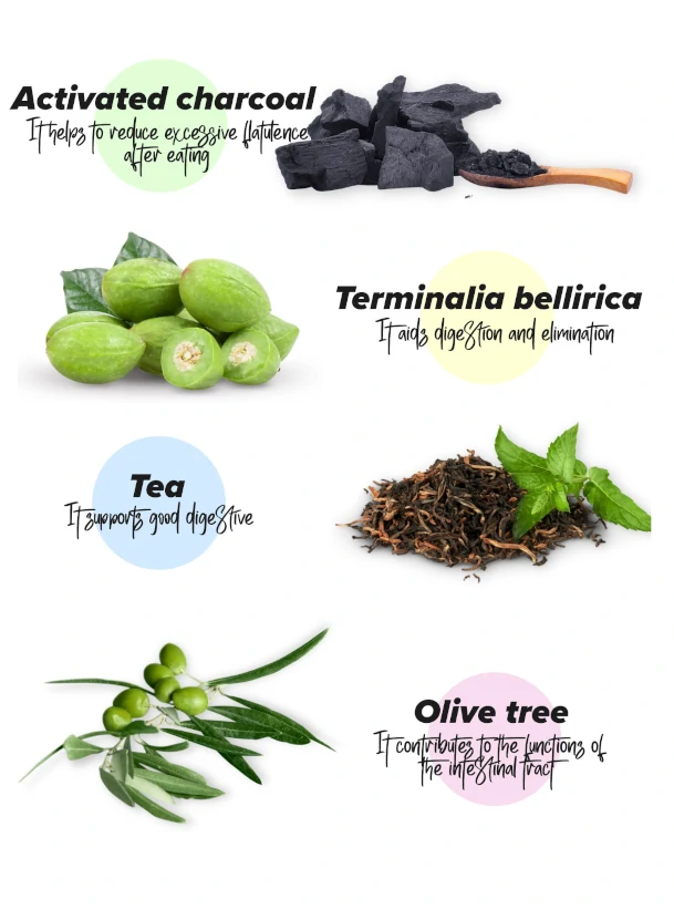 They're dietary supplements made from plants, such as cayenne or ginger, plant enzymes rich in calcium and yeast, and effective active charcoal *, with properties that help reduce excess flatulence.