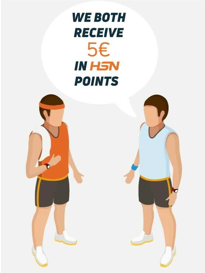 6 days after your friend´s first order, you will both receive 5€ in the form of HSN Points, to spend on future orders.